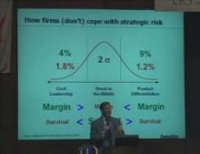Speaker A And what I'd like to do this morning is give you sort of skim across the ways of the work that's happening in the strategy of paradox wanted to describe how I was grappling with one particular problem that requisite organizations seem to provide a great deal of help in solving. So rather than making this talk about requisite organizations, I want to talk about strategic uncertainty and approaches to strategic uncertainty and say something I hope potentially helpful about how ro useful to me in my work, in organizing my thinking in grappling this particular problem. So what is strategic uncertainty and why is it solid? Well really what got me started in grappling with the notion of strategic uncertainty was the observation that it seemed to me that there were any number of organizations that had created bridget strategies, implemented them flawlessly and yet nevertheless came near total ruin. Now, my concern was not that somehow all failures consequence of great strategy the universe would have to be a pretty malevolent place in order for that to be true. My concern was that in fact, in many instances organizations failures were all the more nearly complete precisely because their strategies were so great. Now let me elaborate on what I mean by that. Quick example people remember sony betamax. The sony beta max was launched in 1974 and it really was a revolution to me. And in the consumer electronics industry the device that made it possible for people to timeshift television program watch what they wanted to watch when they wanted to watch it 1974, this was of course a revolution. Now sony followed by my understanding, all the prescriptions of what constitutes a great strategy. They understood the markets that they were attempting to serve extraordinary well. They made material commitments to creating a very particular type of technology that was focused on specific customer use and they executed against that plan perfectly. The problem is that all of those perfectly reasonable bets that they made turned out to be the wrong bets. Not because that they were stupid, but because the future was fundamentally uncertain in ways that there was simply no way to define. The story here is not that well then somebody should have somehow seen the future more clearly because I believe that it's fundamentally impossible to do that. Neither can we suggest that somebody should somehow found a way to be adaptable in the face of this uncertainty because after all, once you've made a commitment, well then by definition is very hard to reverse. Commitments that you can change quickly really weren't commitments in the first place. So my point here is that sony and other examples that I go through in the book companies like diventi and north south and so on, all of these companies pursued high commitment strategies in order to make possible the tremendous results that they saw. But it was those very commitments that made it impossible for them to adapt when it turned out they had guessed wrong. The bad news is there was really no way for them to guess right. That then is strategic uncertainty. And the strategy paradox is the fact that from a behavioral perspective at least precisely the same types of behaviors that are required for extreme strategic success namely high commitment positions are also systematically associated with mere total failure. In other words, the opposite of success is not failure the opposite of success is mediocrity. And from a behavioral perspective success and failure are in fact twins. First of all I'd like to start with the observation that in my view at least this notion of strategic uncertainty about attempting to describe it has been fundamentally ignored. An implication of this is that as nearly as I can tell based on some rather large scale research most companies of the consequence are either optimized for mediocrity or face an unacceptable probability of mere total rule. The resolution and this is where requisite organization comes into play the resolution of the strategy paradox is to separate the making of strategic commitments from the management of strategic uncertainty. Now again one central thread I think comes through which is important view commitment is absolutely central to successful strategy. Based on his research organizations must commit themselves over time to specific strategic positions in particular product markets. It is only through making these commitments that it becomes difficult for competitors to imitate what you're doing. And it is this difficulty in imitation this inevitability in strategic position that makes it possible for an organization to actually capture the economic ranks that it creates. So vision a clear compelling vision of the future is necessary for strategic success and a commitment over time to the realization of that vision. Now here's the problem as I suggested with the Sony Anecdote how are you supposed to know what to have a vision of and how are you supposed to know what to commit to? Vision and commitment are necessarily about the future but they are based on decisions and choices made today. And so with the consequence we run into a rather unfortunate situation where because of the way Moser business strategy is done and because we have walked past this unanswered question about the relationship between the choices we make today and the future context in which those choices play out we have actually in my view ignored strategic uncertainty. Now there's a rather characteristic feature of these populations of firms and it's a necessary consequence of the fact that business performance is relevant. What you tend to find is that what you tend to find is that there are large numbers of firms out here at the left with low levels of performance and small numbers of firms out there at the right with high levels of performance. And this is not a criticism it's a necessary function of the fact that only 10% of the population c