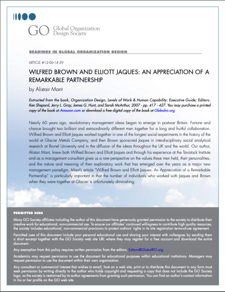 This article demonstrates the unique partnership and commonalities of Wilfred Brown and Elliott Jaques