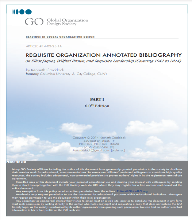 The Global Organization Design Society is pleased to host this Introduction and Annotated Bibliography on Jaques' work - now in its Sixth Edition.